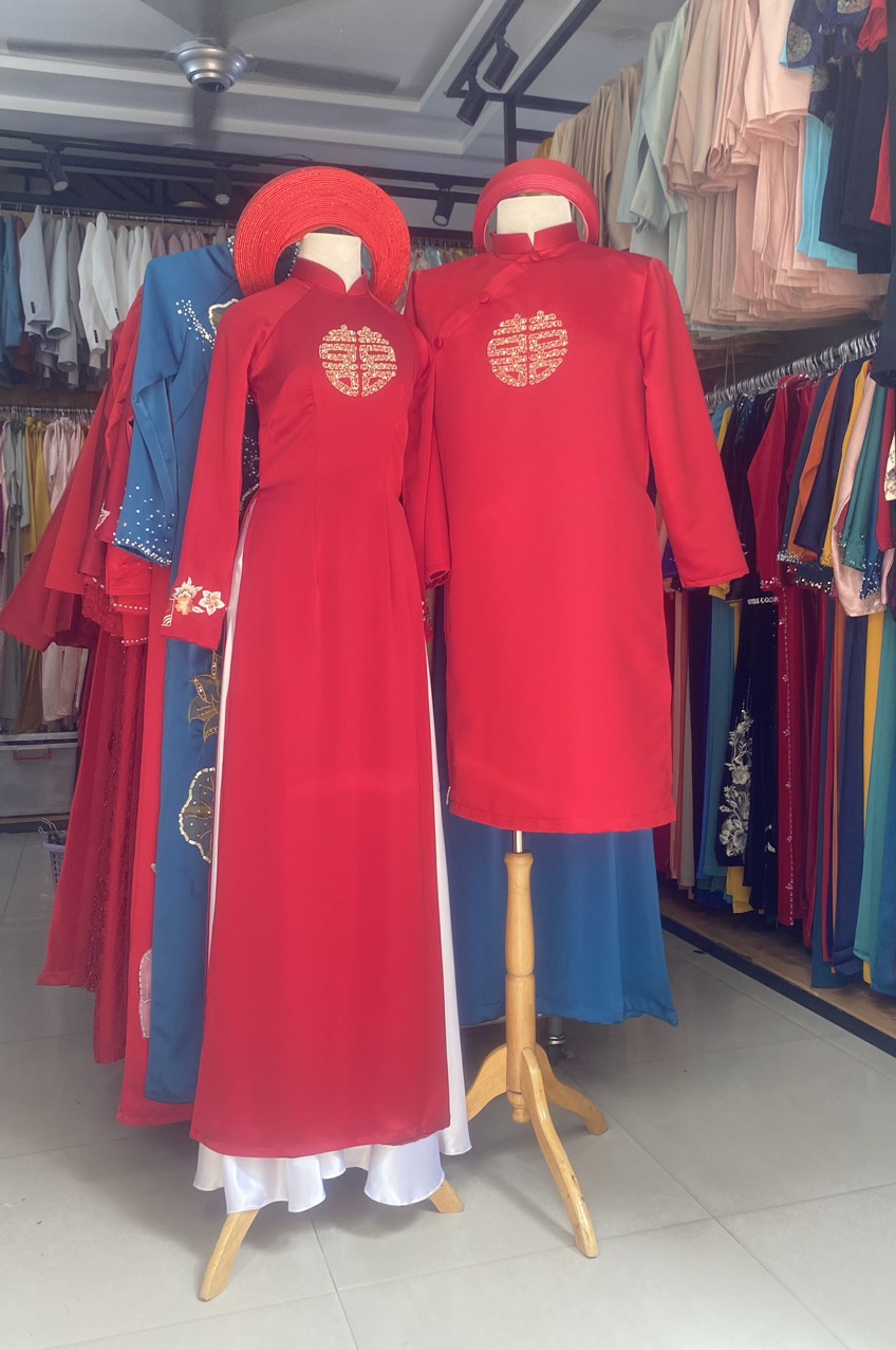 ÁO DÀI CẶP ĐỎ KẾT HOA HỒNG