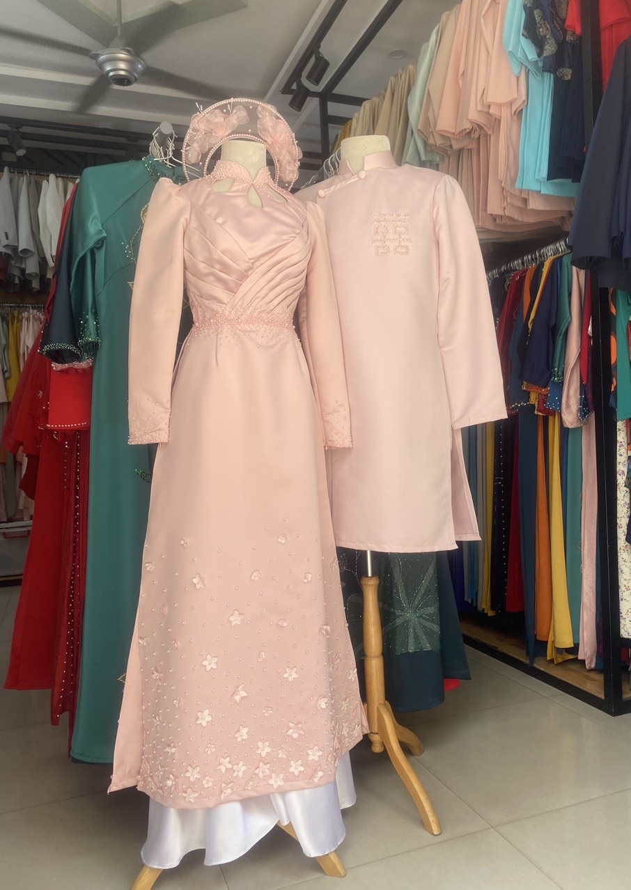 ÁO DÀI CẶP ĐỎ KẾT HOA HỒNG