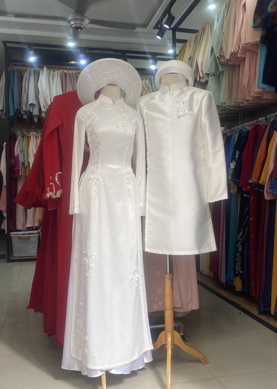ÁO DÀI CẶP TRẮNG, ĐỎ VÀ ÁO CHOÀNG