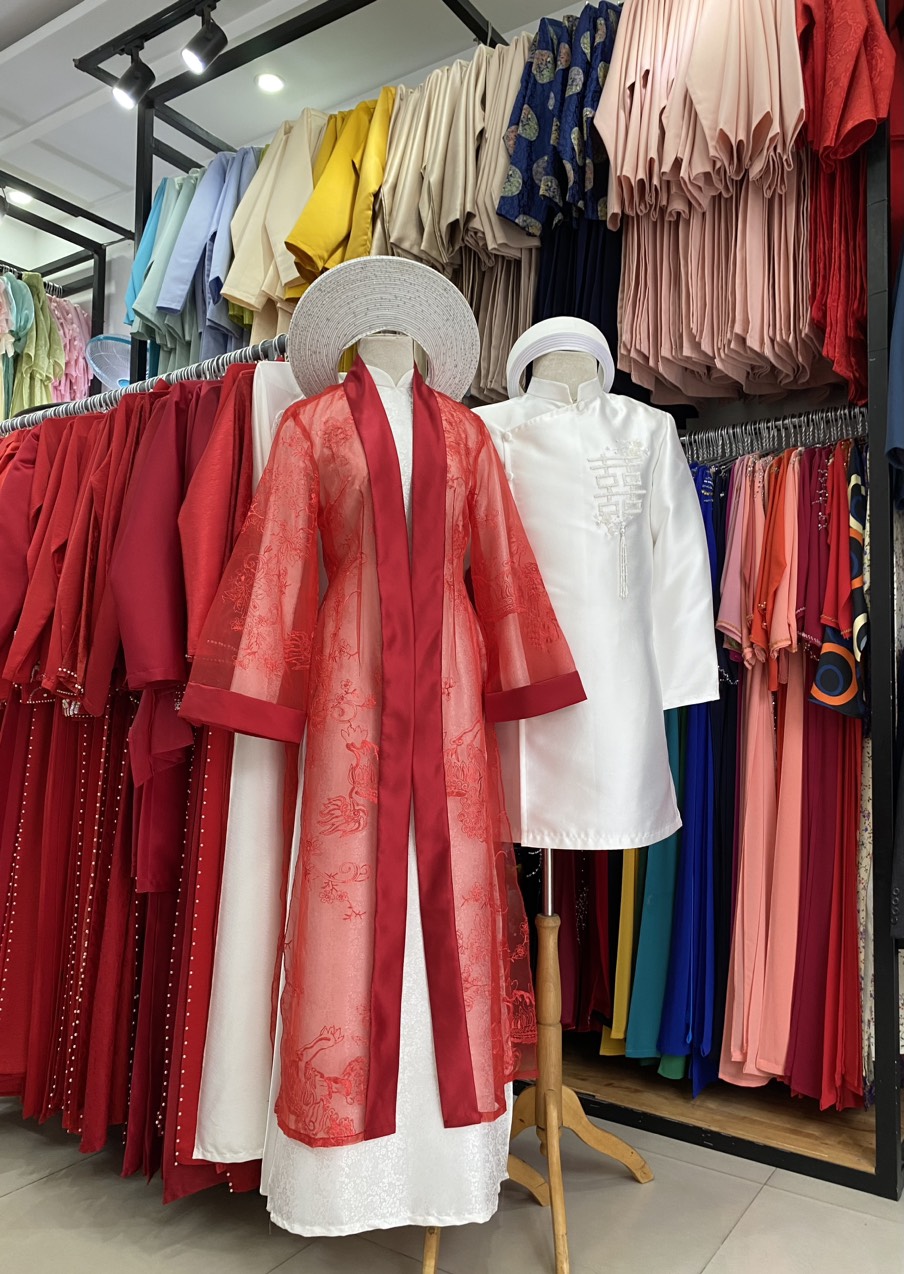 ÁO DÀI CẶP TRẮNG, ĐỎ VÀ ÁO CHOÀNG