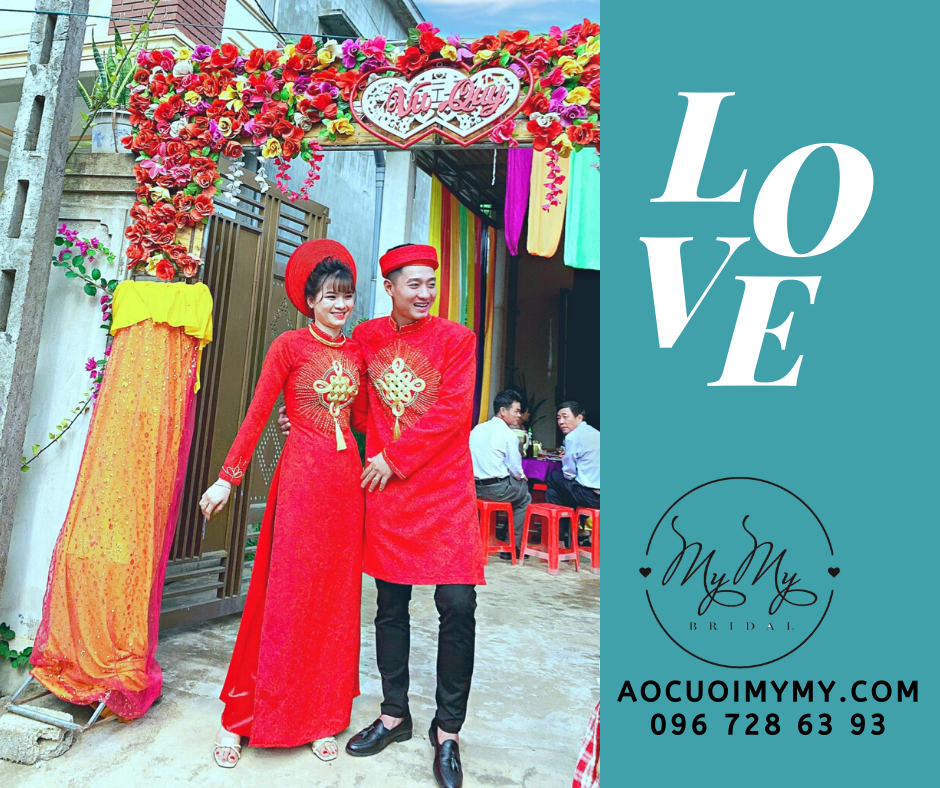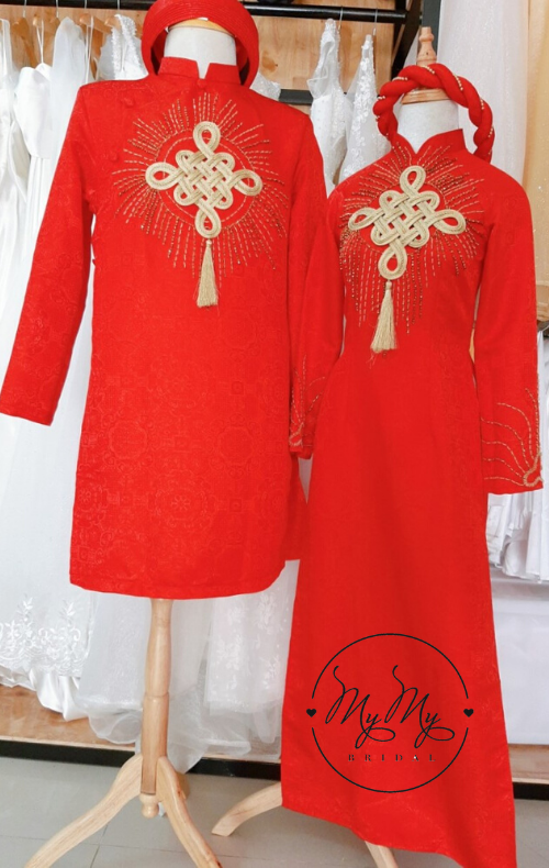 ÁO DÀI CẶP ĐỎ KẾT HOA HỒNG