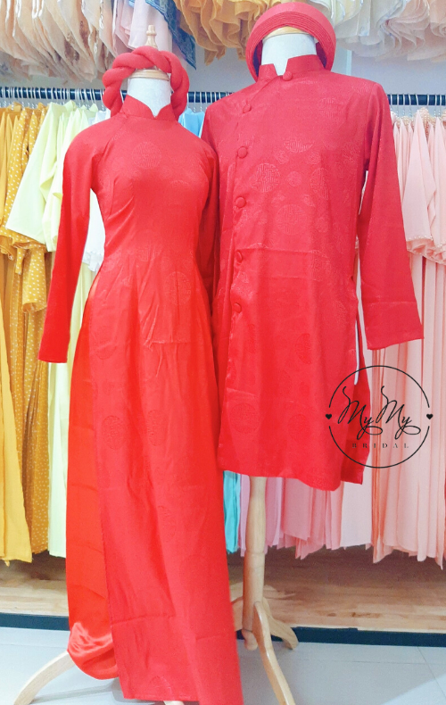 ÁO DÀI CẶP ĐỎ KẾT HOA HỒNG