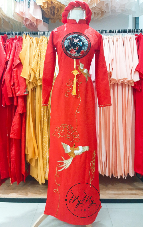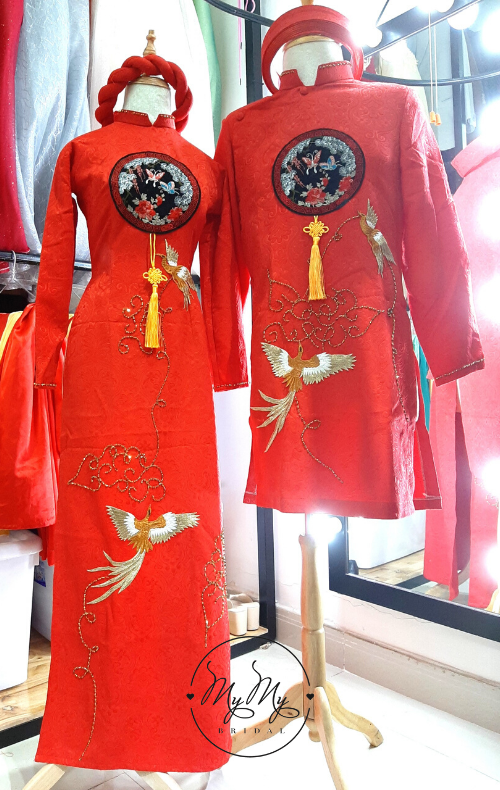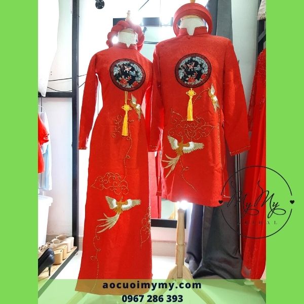 ÁO DÀI CẶP ĐỎ KẾT HOA HỒNG