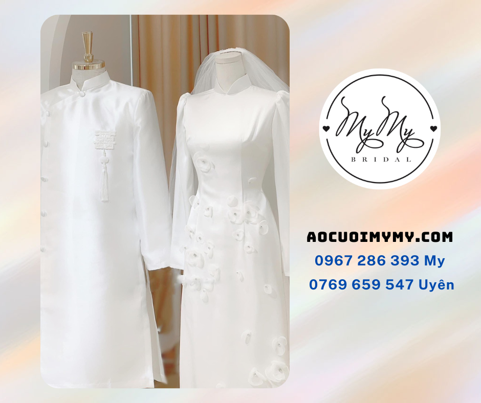 Ngày nay kế thừa và phát triển áo dài cưới truyền thống, những thiết kế áo dài cưới cách tân thêu thủ công tinh xảo, đa dạng về màu sắc đường nét kiểu dáng. Áo dài cưới cách tân hiện đại nhưng vẫn giữ được nét thanh lịch, nổi bật trong ngày ra mắt quan viên hai họ. Nếu các nàng dâu tương lai đang muốn tìm chọn cho mình một mẫu áo dài cưới đẹp ưng ý cho ngày hôn lễ thì hãy để ÁO CƯỚI MYMY gợi ý một số mẫu cho dâu rể nhé.!!