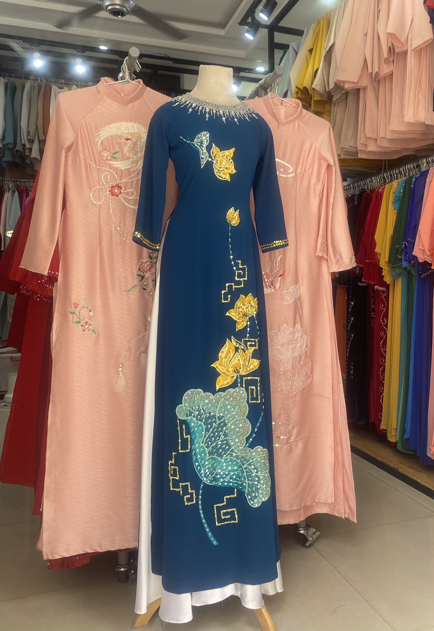 ÁO DÀI BÀ SUI THÊU HỌA TIẾT HOA SEN