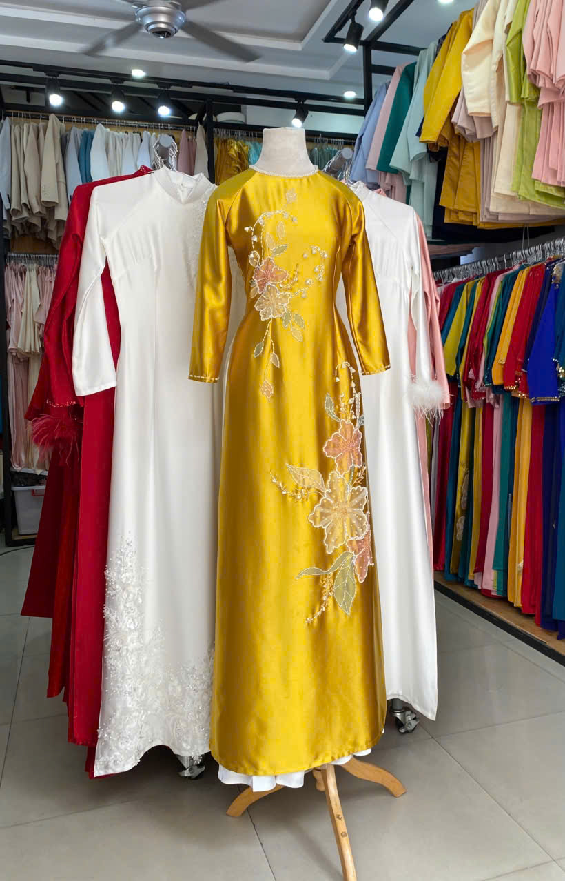 🎀 Phù hợp cho: Áo dài vàng thêu hoa rất phù hợp cho bà sui diện trong các sự kiện quan trọng như lễ cưới, lễ hỏi. Thiết kế kết hợp giữa truyền thống và hiện đại, với màu sắc tươi sáng và họa tiết tinh tế, sẽ giúp người mặc trở nên nổi bật và tự tin trong ngày trọng đại.