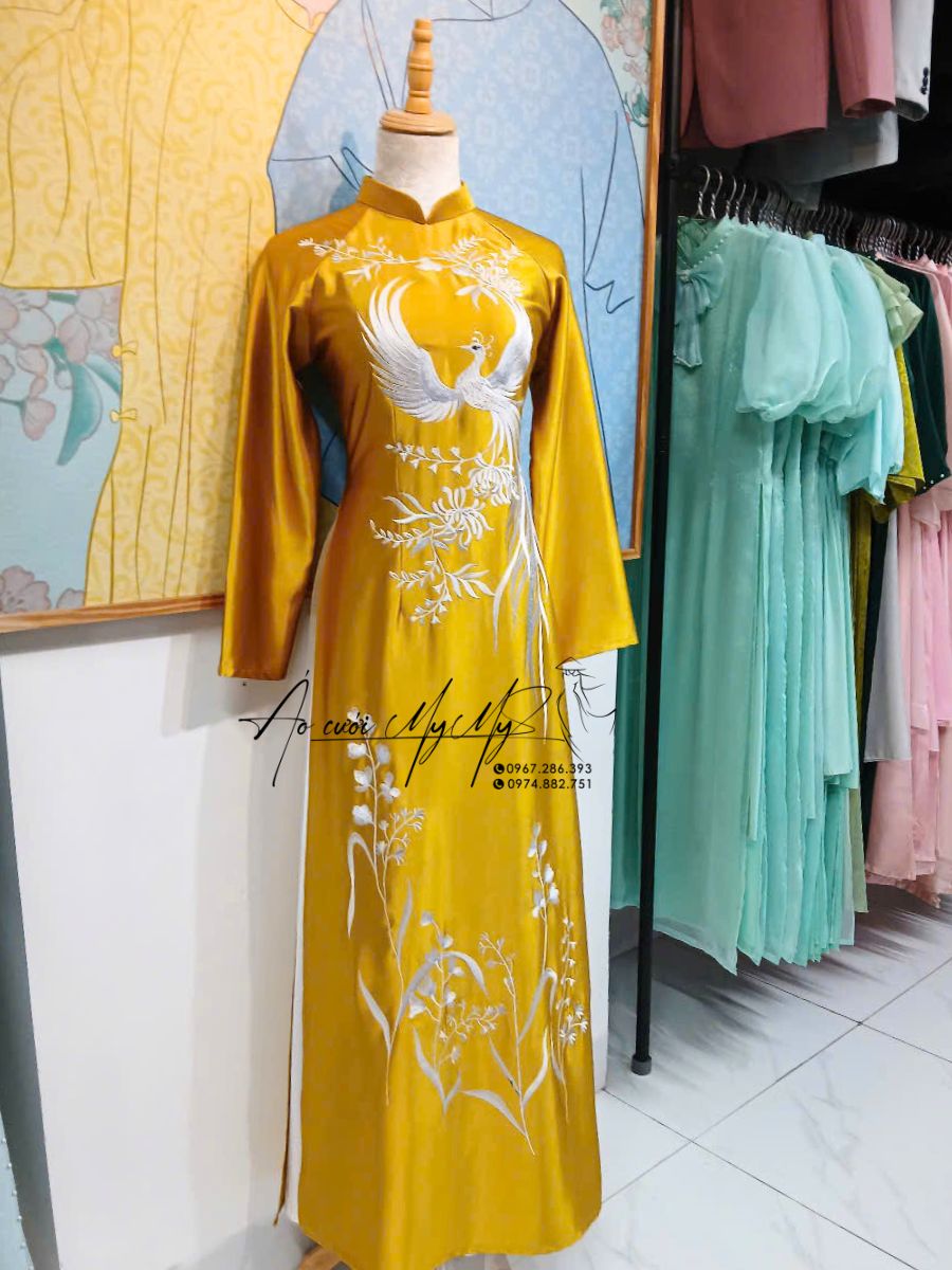 ÁO DÀI SUI VÀNG THÊU CÔNG