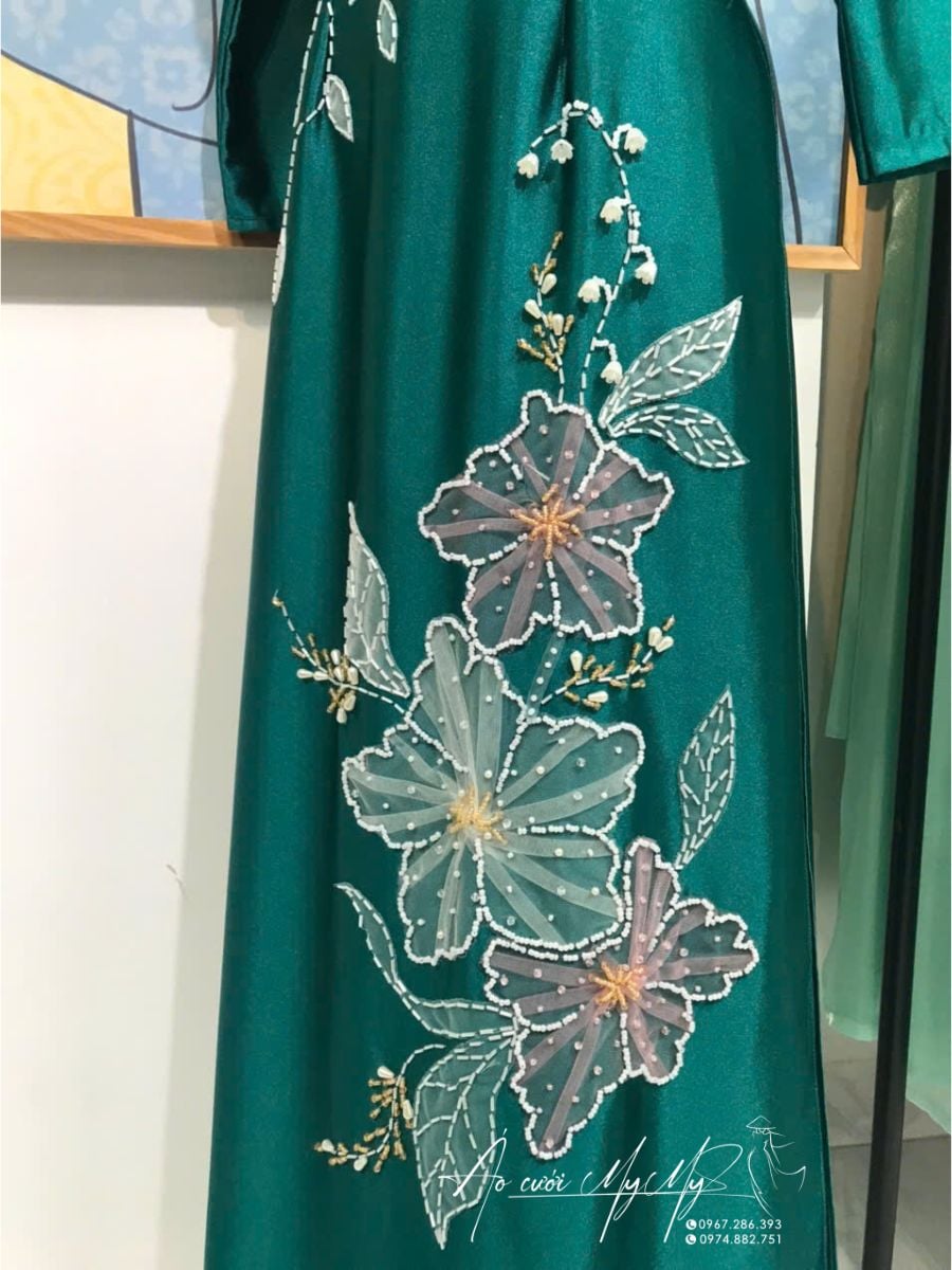 Họa tiết: Đính kết hoa huệ kết hợp đính đá lấp lánh, mang ý nghĩa thanh cao, sang trọng.