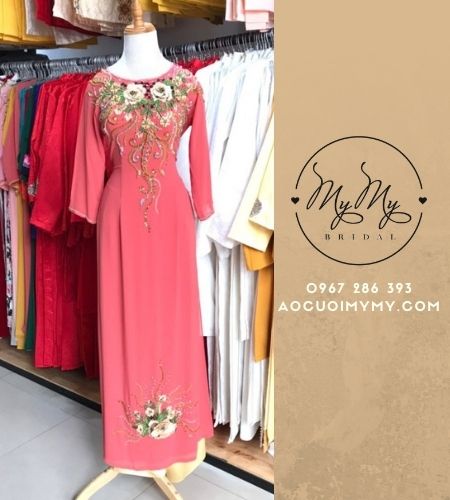 ÁO DÀI SUI GIA MÀU CAM KẾT CƯỜM