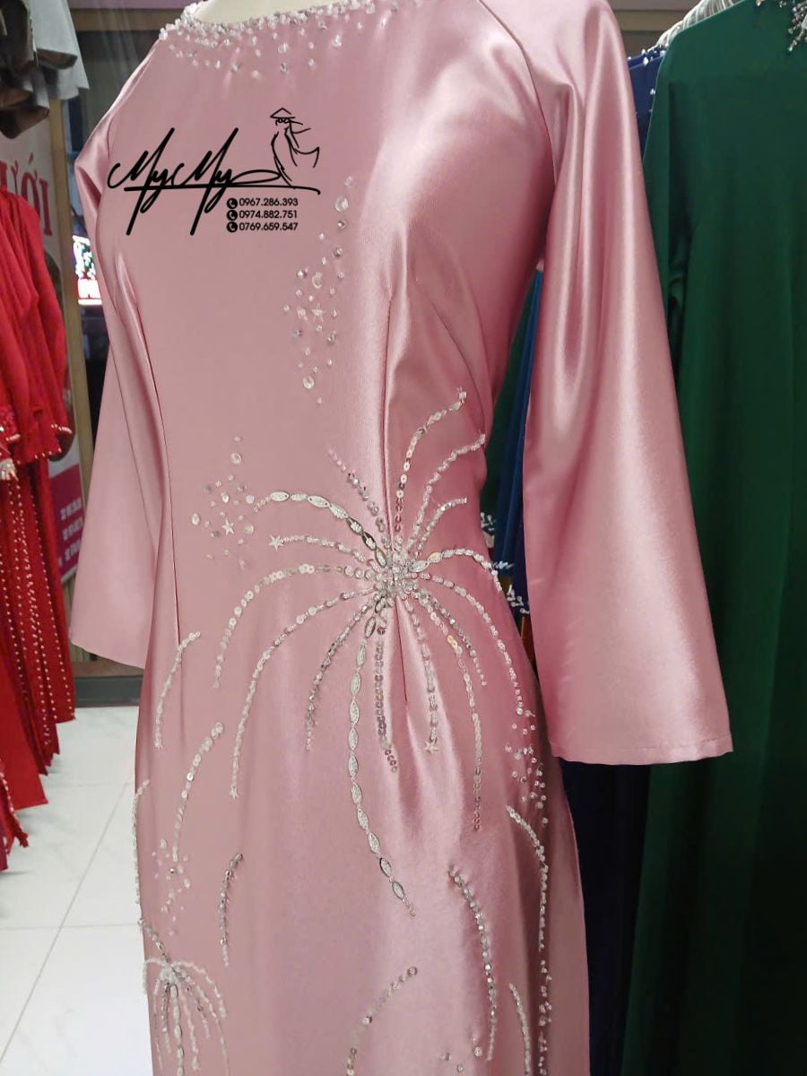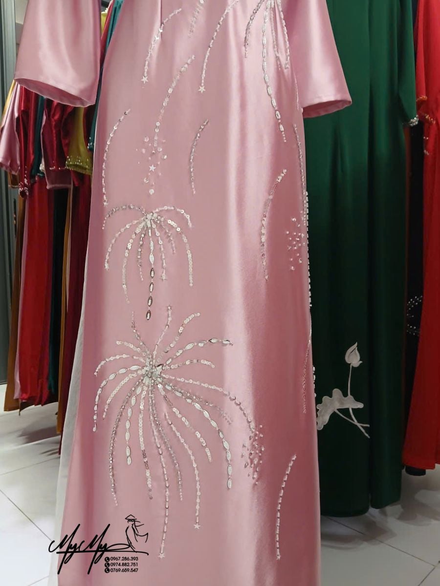 Cho thuê áo dài sui hồng pháo hoa pha lê cao cấp – Lựa chọn hoàn hảo cho dịp Tết, sự kiện, chụp ảnh nghệ thuật. Thiết kế áo dài nữ truyền thống kết hợp họa tiết đính đá pha lê sang trọng, giúp tôn dáng và nổi bật trước ống kính.