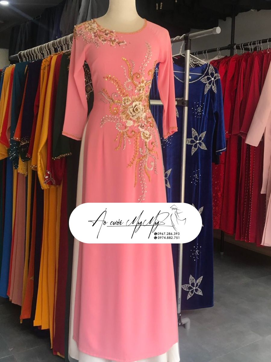 ÁO DÀI SUI VÀNG THÊU CÔNG