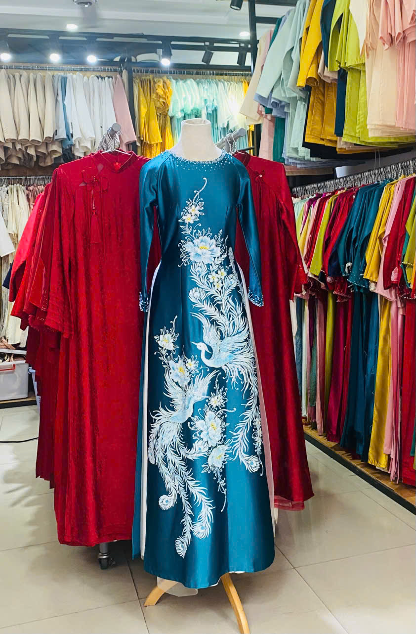 ÁO DÀI SUI XANH THÊU ĐÔI PHƯỢNG HOÀNG