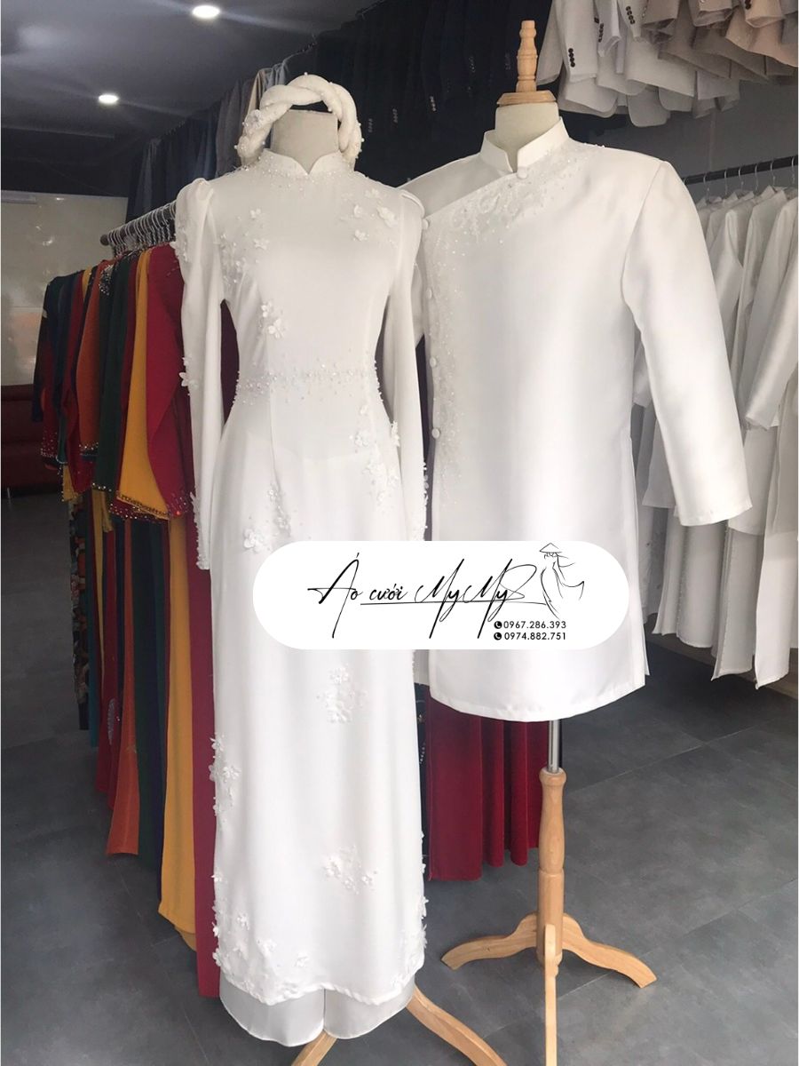 ÁO DÀI CƯỚI CẶP KEM KẾT HOA