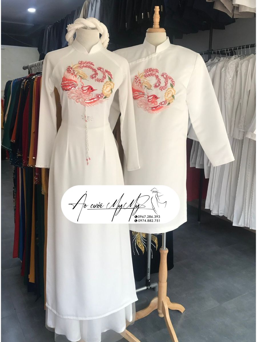 ÁO DÀI CƯỚI CẶP KEM KẾT HOA