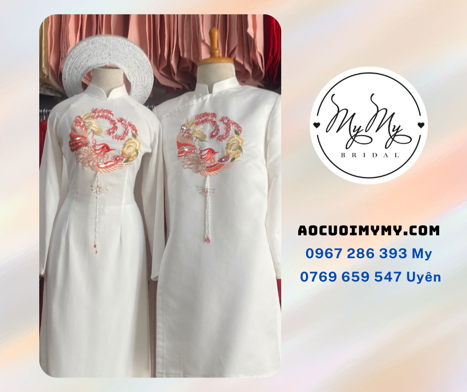 ÁO DÀI CƯỚI CẶP HỒNG KẾT HOA