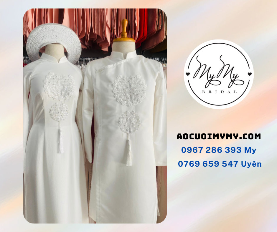 ÁO DÀI CƯỚI CẶP KEM KẾT HOA