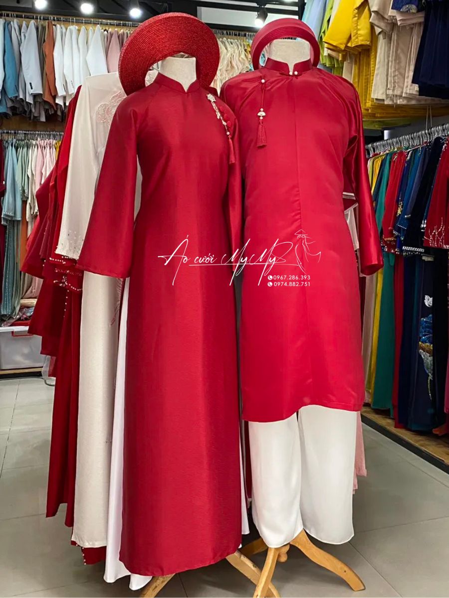 ÁO DÀI CƯỚI CẶP ĐỎ KẾT HOA