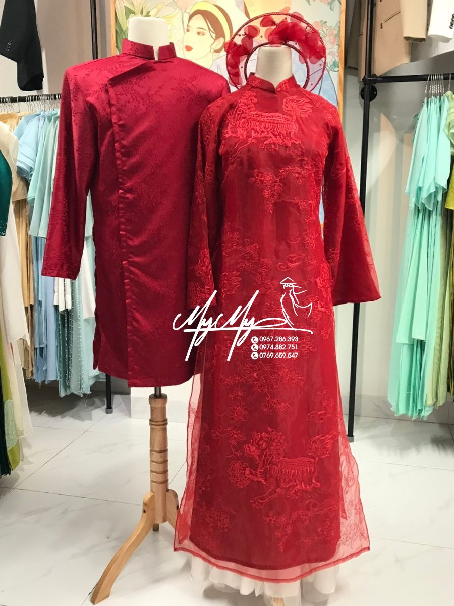 ÁO DÀI CƯỚI CẶP ĐỎ LAN HỒ ĐIỆP