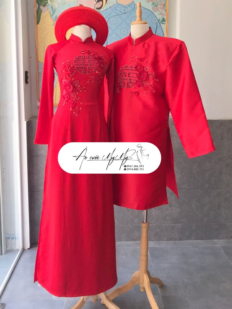 ÁO DÀI CƯỚI CẶP ĐỎ KẾT HOA