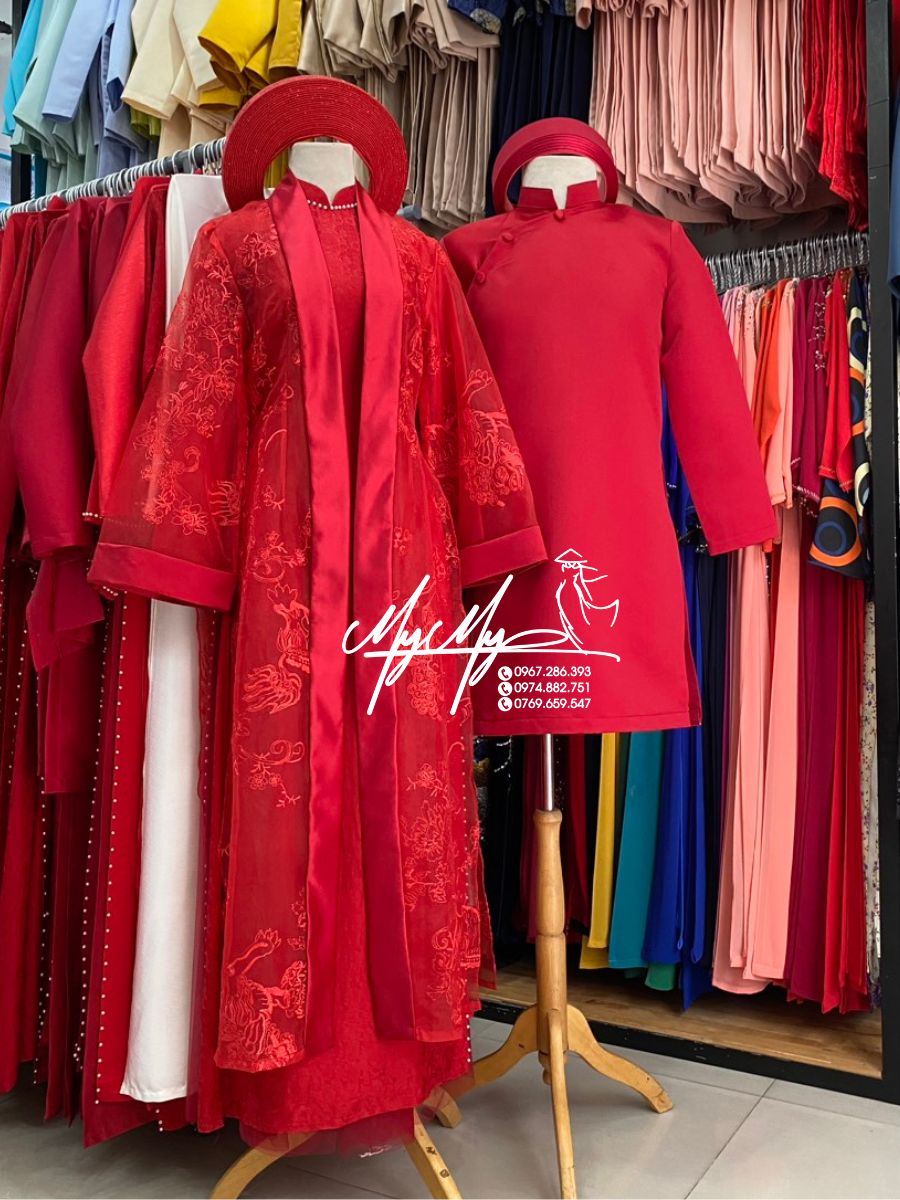 ÁO DÀI CƯỚI CẶP ĐỎ KẾT HOA
