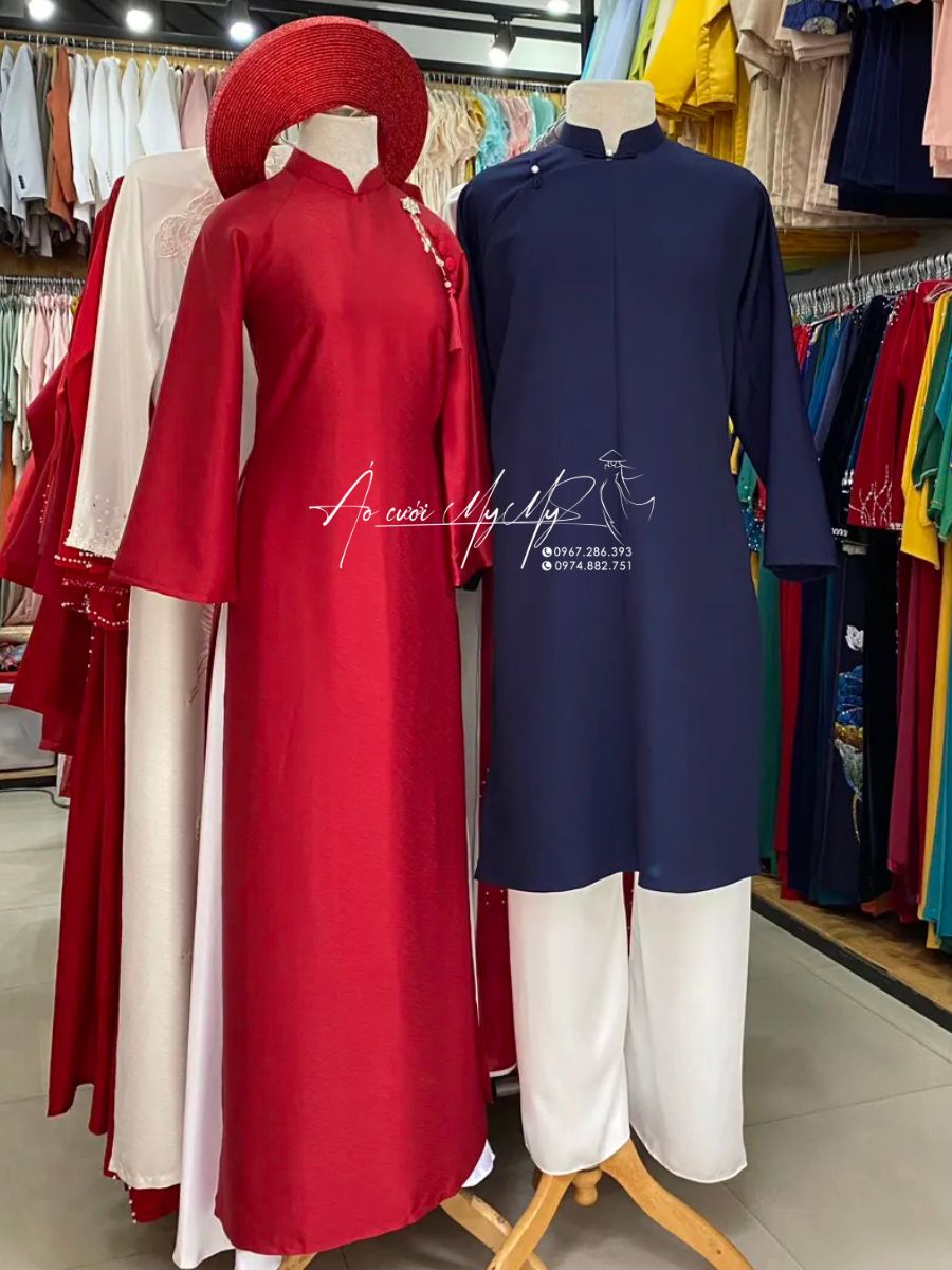 ÁO DÀI CẶP ĐỎ VÀ XANH HOÀI CỔ