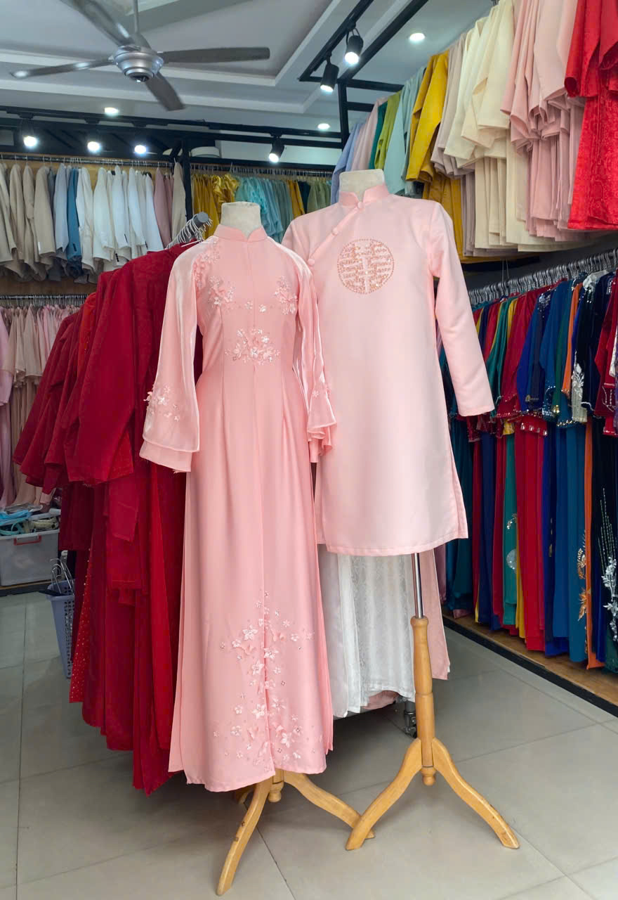 ÁO DÀI CƯỚI CẶP HỒNG KẾT HOA