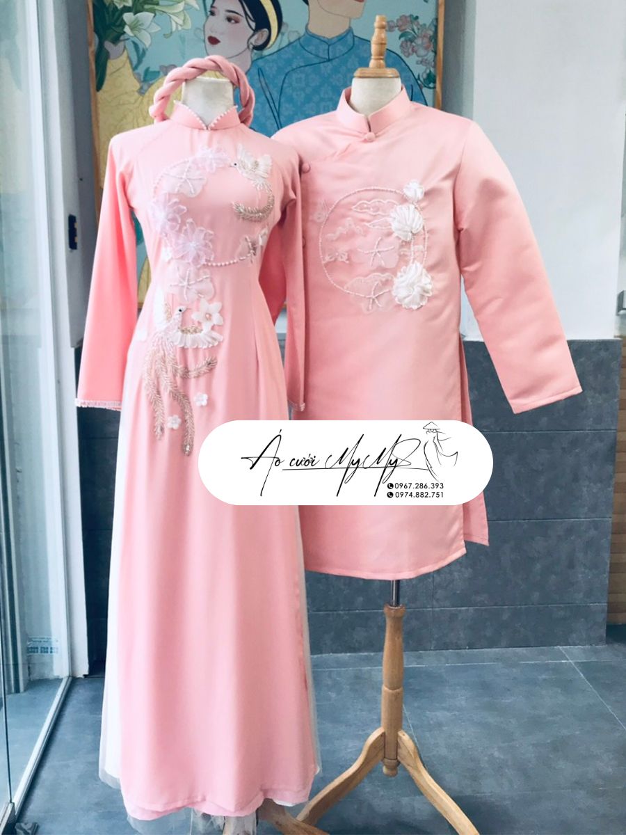 ÁO DÀI CƯỚI CẶP HỒNG KẾT HOA