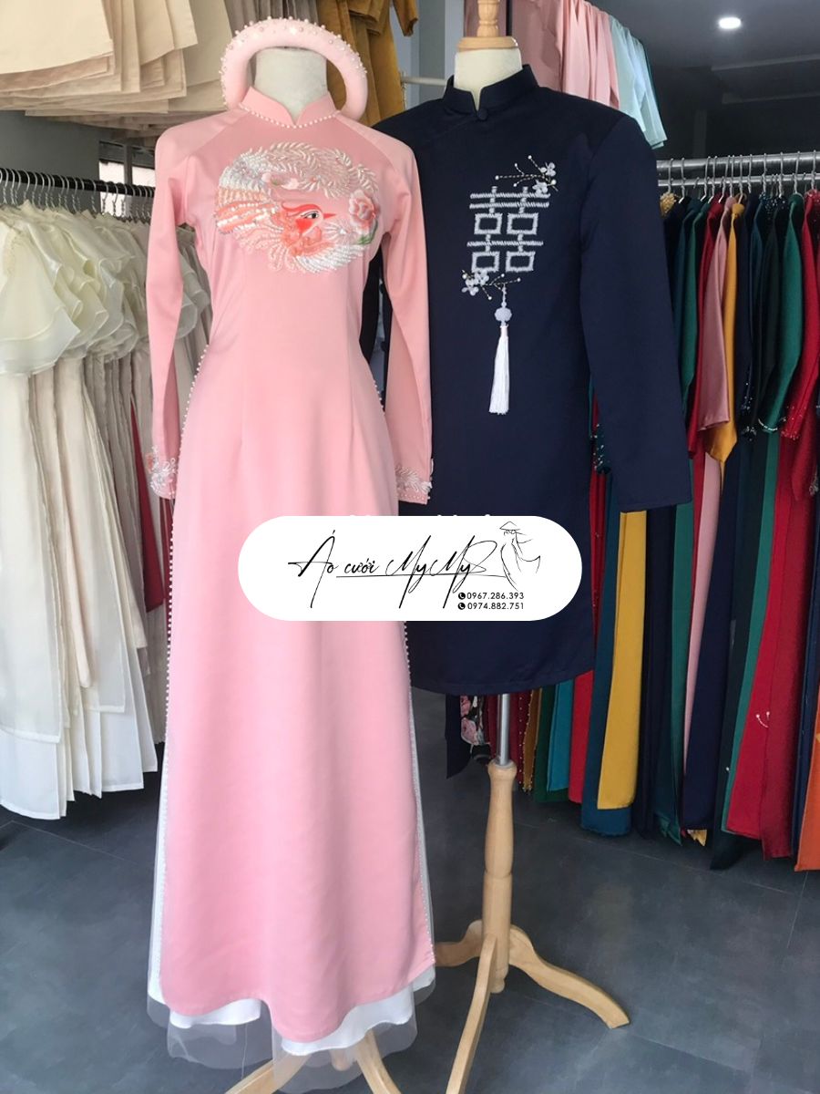 ÁO DÀI CƯỚI CẶP HỒNG KẾT HOA
