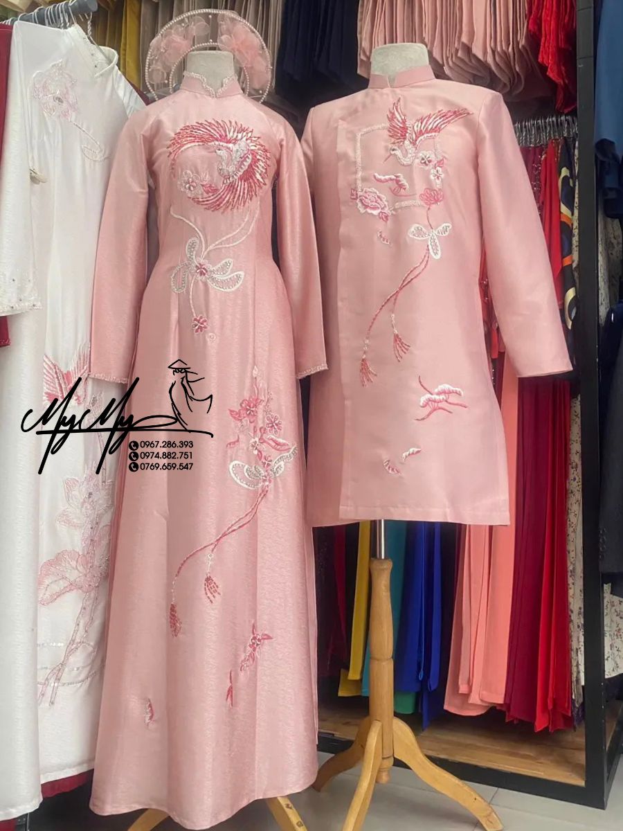 ÁO DÀI CƯỚI CẶP HỒNG KẾT HOA