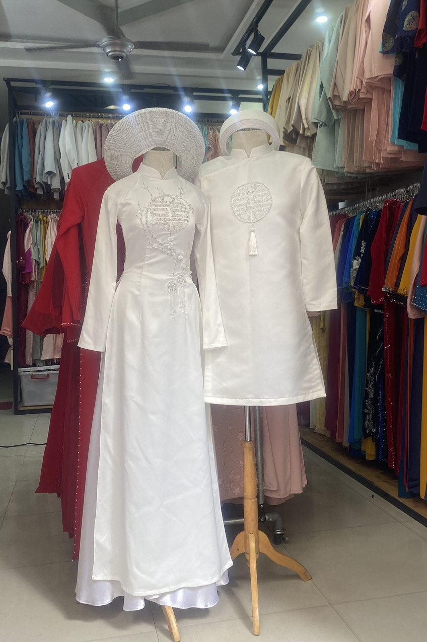 ÁO DÀI CẶP TRẮNG ĐÍNH KẾT CHỮ HỶ
