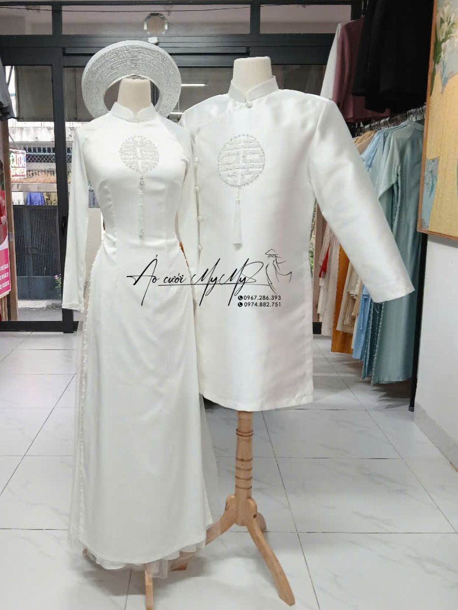 Áo Dài Cặp Trắng Chữ Hỷ là sự lựa chọn lý tưởng cho các cặp đôi yêu thích sự đơn giản trong ngày cưới. Bộ áo dài này được thiết kế với sắc trắng trang nhã, nổi bật với chi tiết chữ “Hỷ” được đính kết tỉ mỉ bằng hạt pha lê, mang đến sự tinh tế và thanh lịch, phù hợp cho cả cô dâu và chú rể.