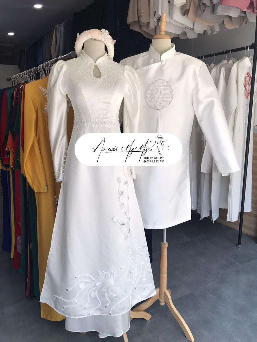 ÁO DÀI CƯỚI CẶP KEM KẾT HOA