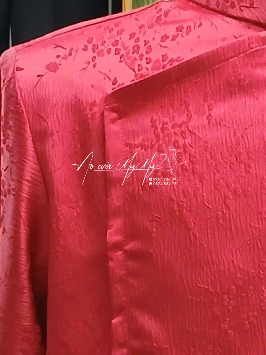 Áo dài chú rể đỏ gấm hoa là mẫu trang phục cưới truyền thống mang đậm nét văn hóa Việt, được thiết kế hiện đại với chất liệu gấm cao cấp, hoa văn chìm sang trọng. Màu đỏ tượng trưng cho sự may mắn và thịnh vượng, rất phù hợp trong các nghi lễ cưới hỏi, đặc biệt là lễ rước dâu hoặc lễ đính hôn.