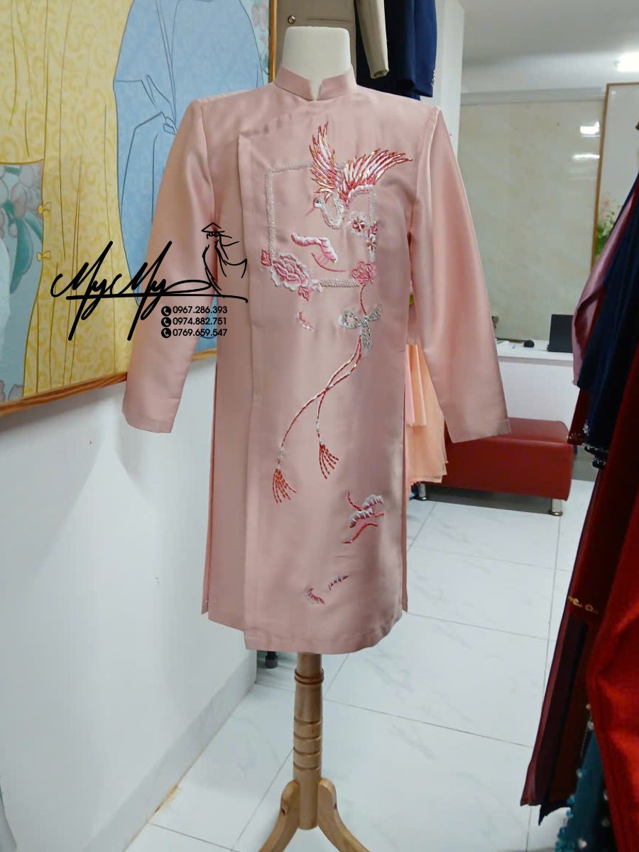 Áo dài chú rể hồng tacta thêu chim phượng đính kết sang trọng – Điểm nhấn phong cách trẻ trung và hiện đại