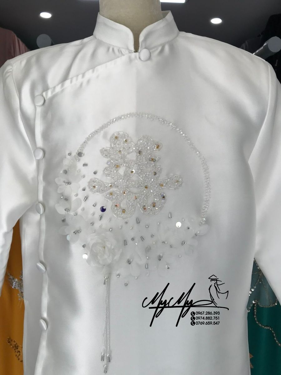 Với thiết kế ôm vừa vặn nhưng không quá chật, áo dài giúp tôn lên vóc dáng của chú rể mà vẫn đảm bảo sự thoải mái. Màu trắng thanh thoát tạo nên sự trang trọng và lịch thiệp, giúp chú rể trở nên nổi bật trong ngày cưới.
