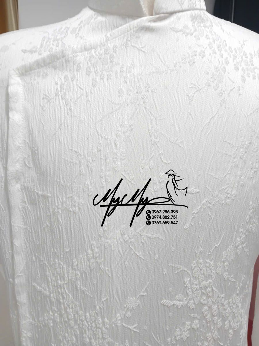 Áo dài chú rể trắng gấm họa tiết hoa văn nổi sang trọng – Lựa chọn hoàn hảo cho ngày trọng đại