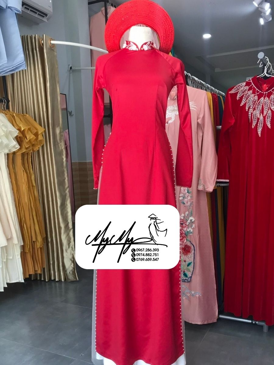 - Phụ kiện: Áo dài đi kèm với mấn đỏ đồng bộ, giúp tôn lên vẻ đẹp trang nhã và đậm chất truyền thống.