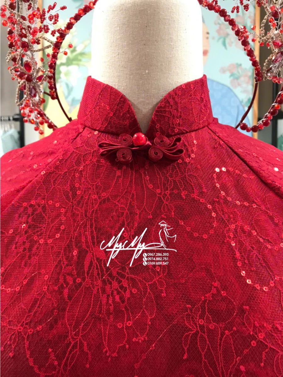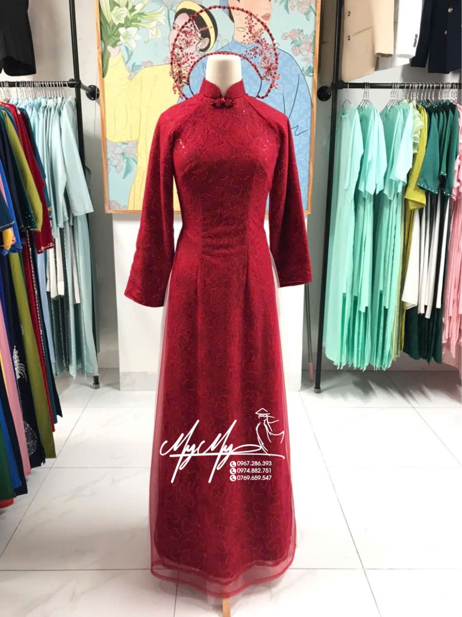 Dịch vụ cho thuê áo dài cô đào đỏ ren kim sa tại cửa hàng cam kết áo mới, form chuẩn, nhiều size.