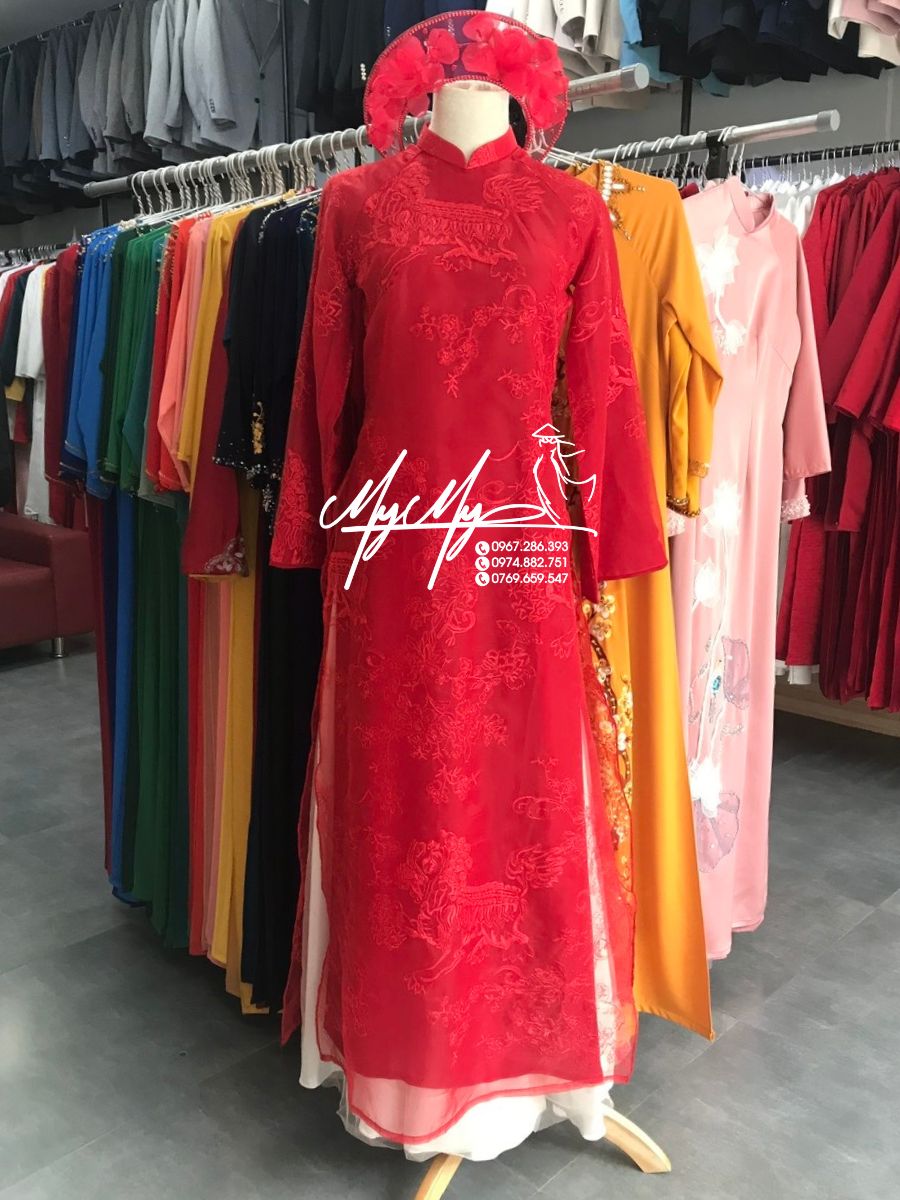 Với gam màu đỏ rực rỡ, mẫu áo dài này không chỉ phù hợp cho lễ cưới truyền thống, mà còn lý tưởng để mặc trong lễ ăn hỏi, chụp ảnh cưới hoặc sự kiện quan trọng.