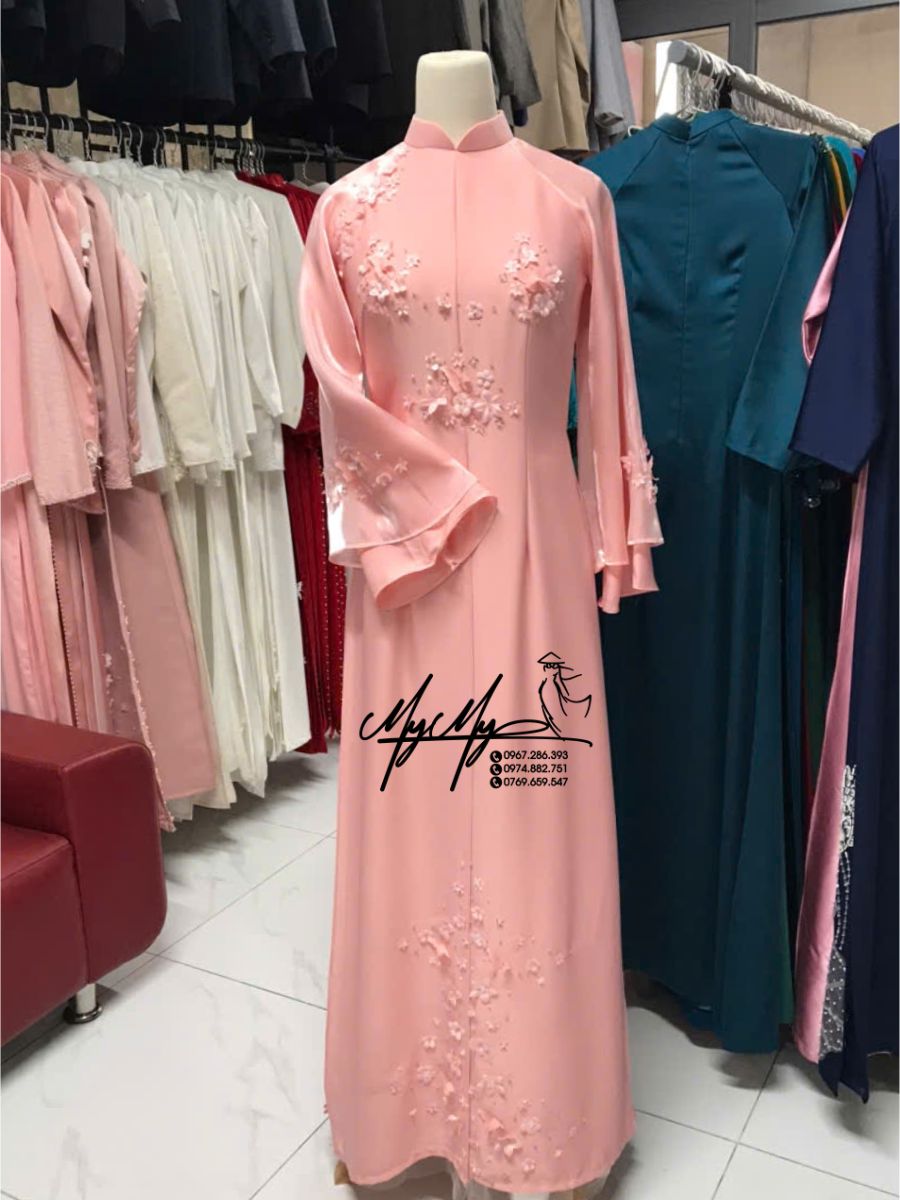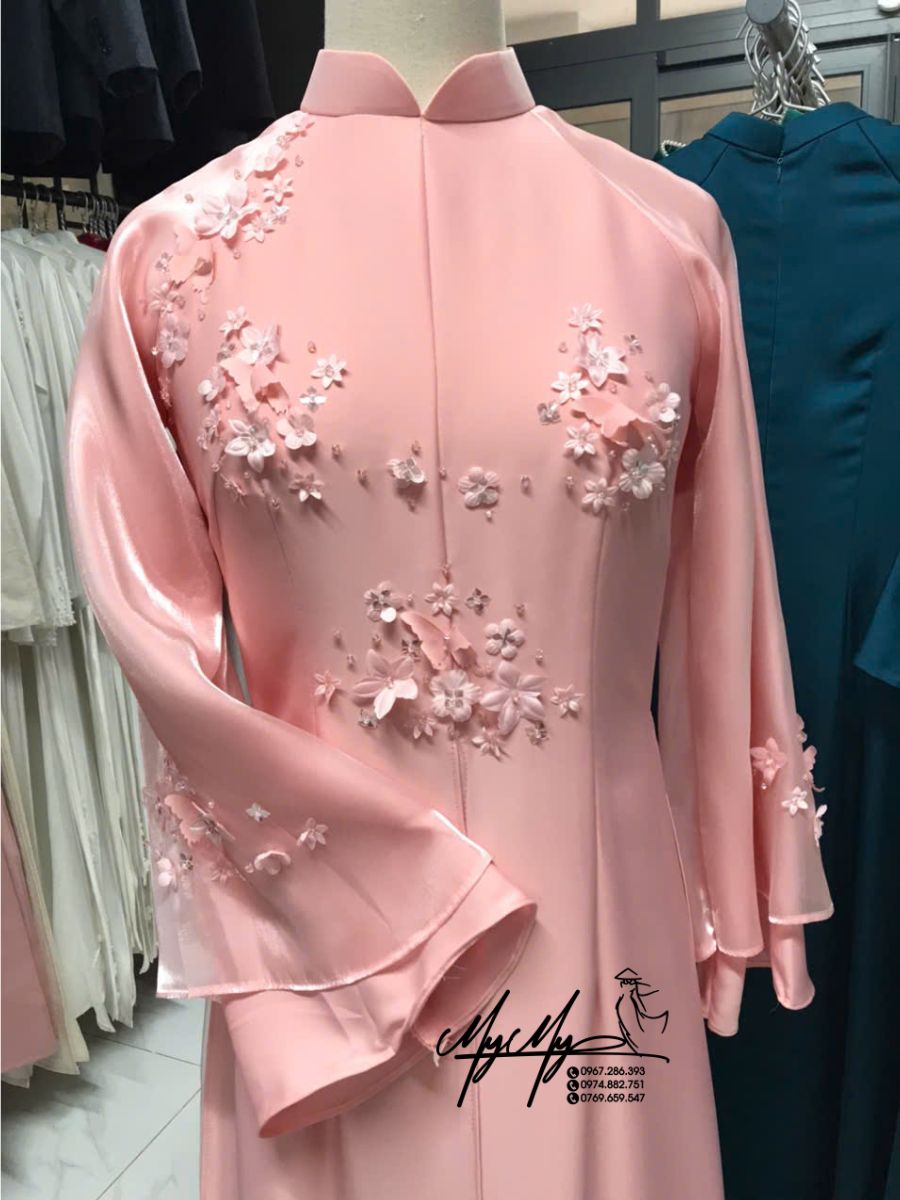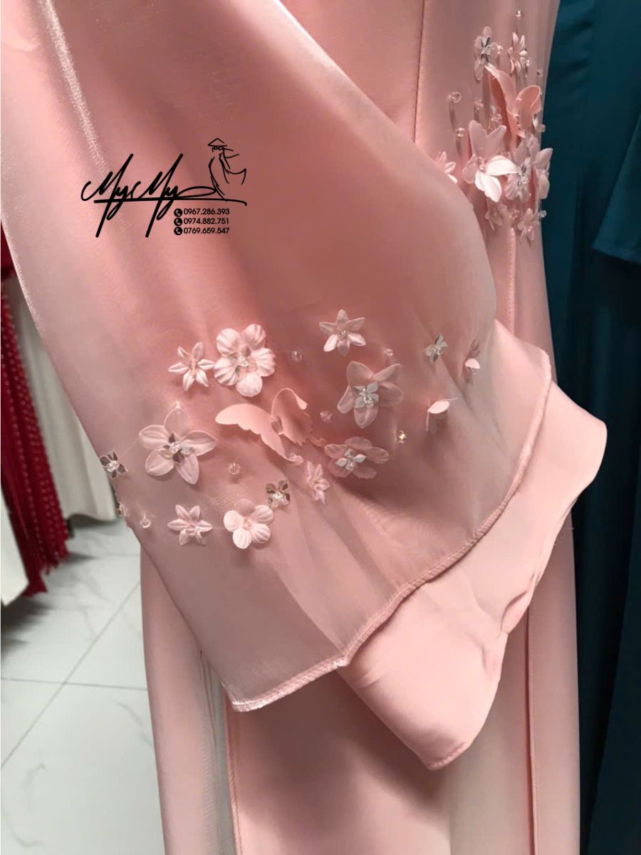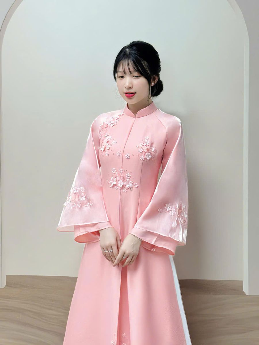Mẫu áo dài cô dâu màu hồng pastel đính hoa 3D là lựa chọn lý tưởng cho các nàng dâu yêu thích phong cách nhẹ nhàng, thanh lịch. Thiết kế mang đậm nét nữ tính, dịu dàng với form dáng chuẩn tôn dáng và họa tiết hoa nổi tinh xảo, giúp bạn tỏa sáng trong ngày trọng đại.