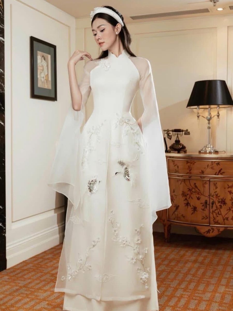 ✨ Tay áo voan nhẹ nhàng – tạo điểm nhấn bay bổng, thướt tha, quyến rũ.