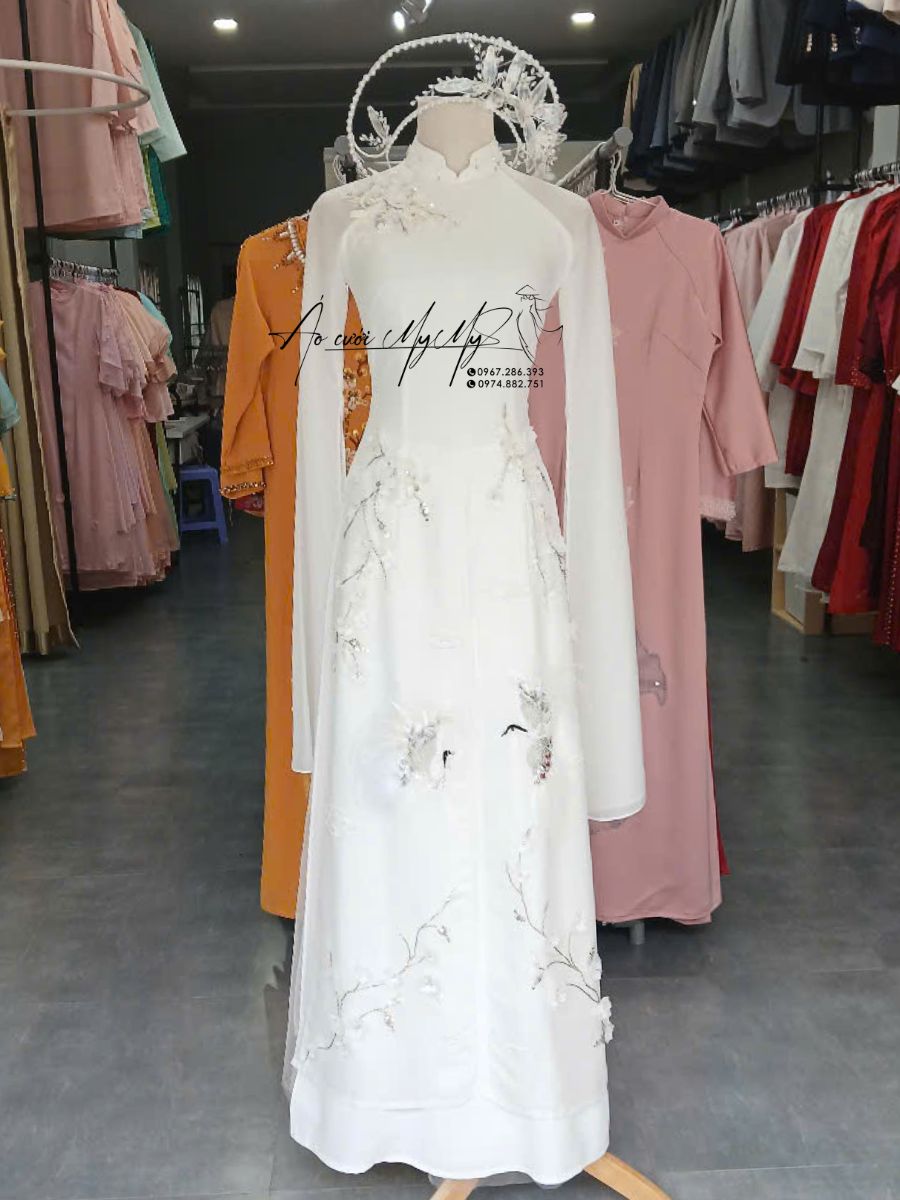 ÁO DÀI CƯỚI CẶP KEM KẾT HOA