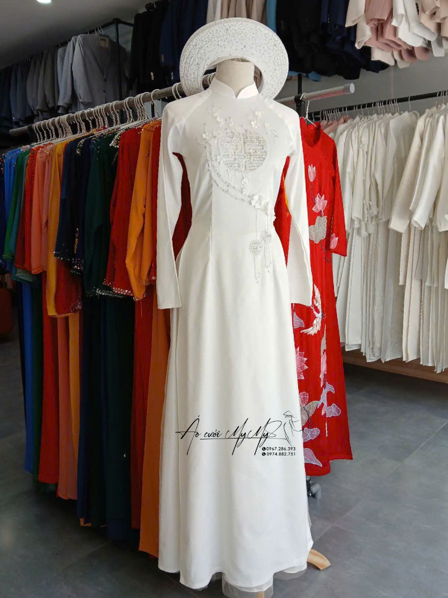 Màu trắng biểu tượng cho sự tinh khiết, nhẹ nhàng nhưng không kém phần sang trọng. Chiếc áo dài này giúp cô dâu tỏa sáng trong ngày cưới, mang đến vẻ đẹp thanh thoát và đầy khí chất.
