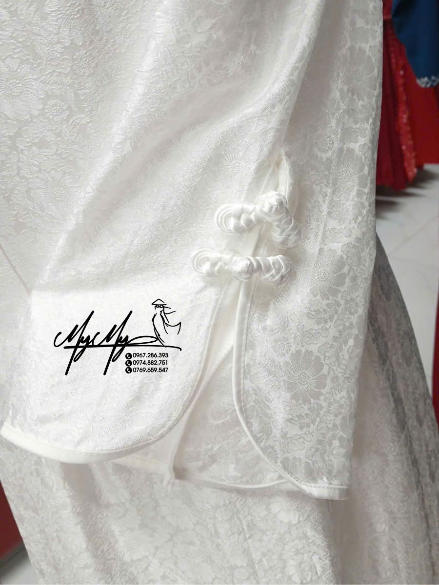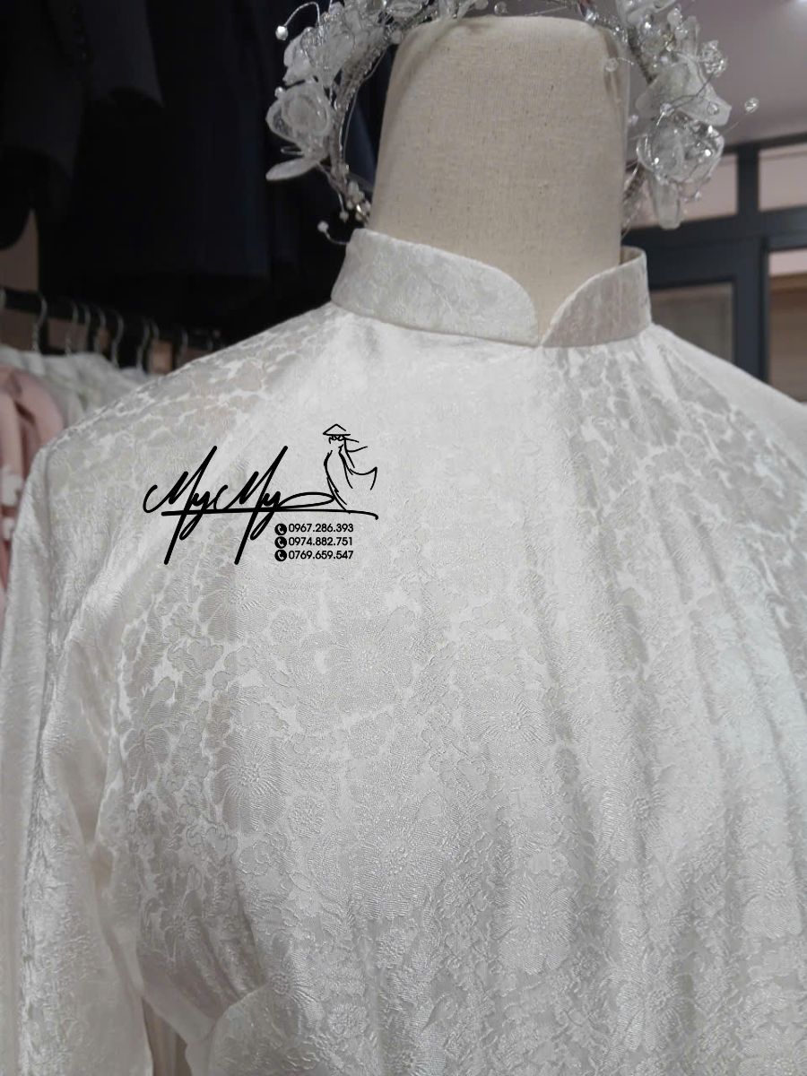 Trong ngày cưới trọng đại, chiếc áo dài không chỉ là trang phục truyền thống mà còn mang ý nghĩa thiêng liêng, biểu tượng cho sự tinh khôi và duyên dáng của cô dâu. Áo dài cô dâu trắng chất liệu tơ tằm họa tiết hoa nổi bật tại Áo cưới My My được thiết kế tối giản nhưng vô cùng tinh tế, giúp nàng dâu tỏa sáng với vẻ đẹp thanh lịch và trang nhã.