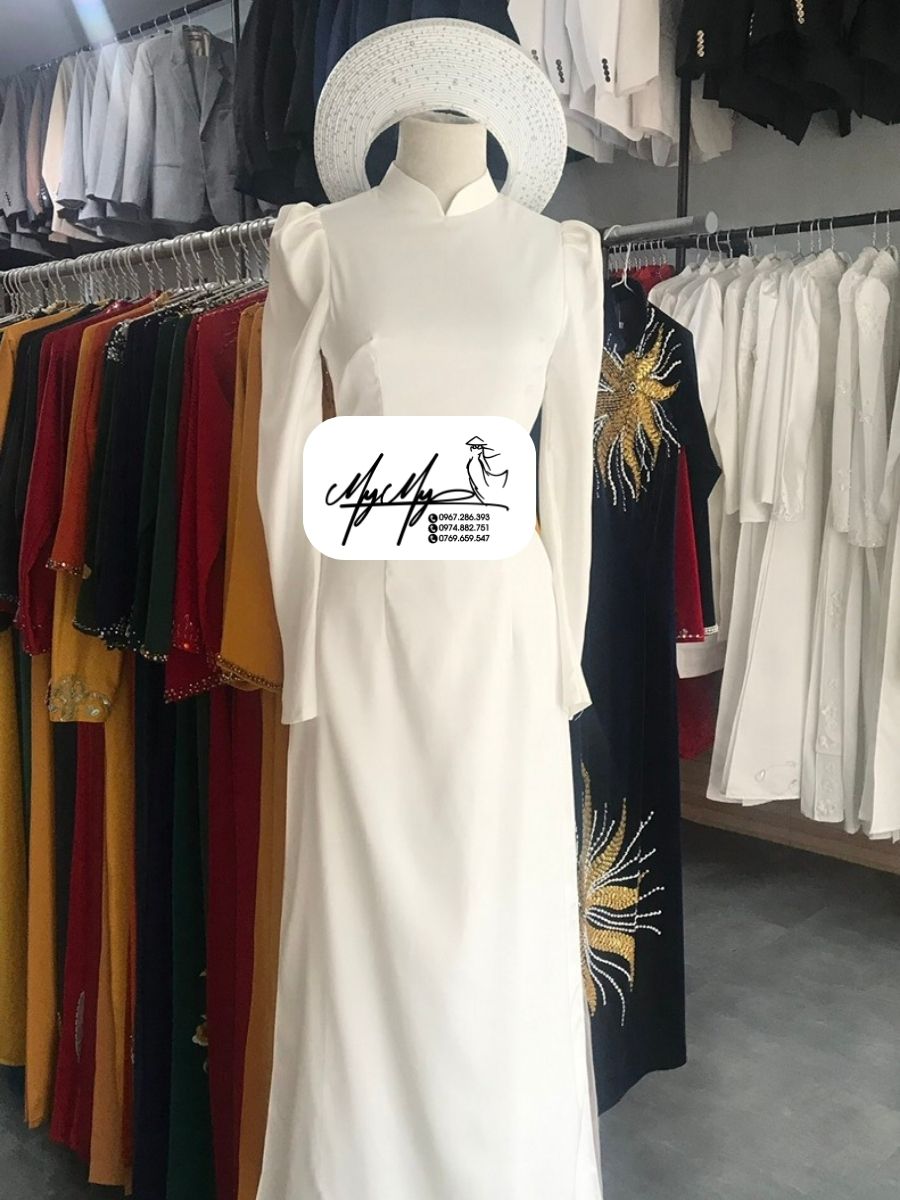 - Phụ kiện: Áo dài đi kèm với mấn trắng đồng bộ, giúp tôn lên vẻ đẹp trang nhã và đậm chất truyền thống.