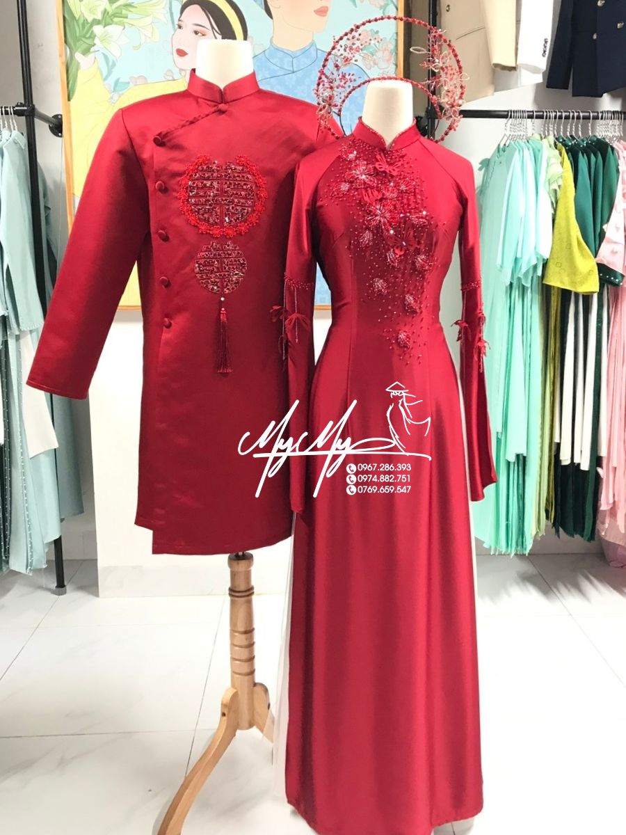 Bộ áo dài cưới cặp đỏ cho thuê là lựa chọn hoàn hảo cho những đôi uyên ương muốn tôn vinh nét đẹp truyền thống nhưng vẫn giữ được sự sang trọng và hiện đại trong ngày cưới.