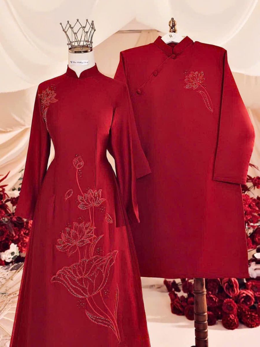 Bộ áo dài cưới cặp đỏ vân gỗ & Tacta là lựa chọn hoàn hảo cho: