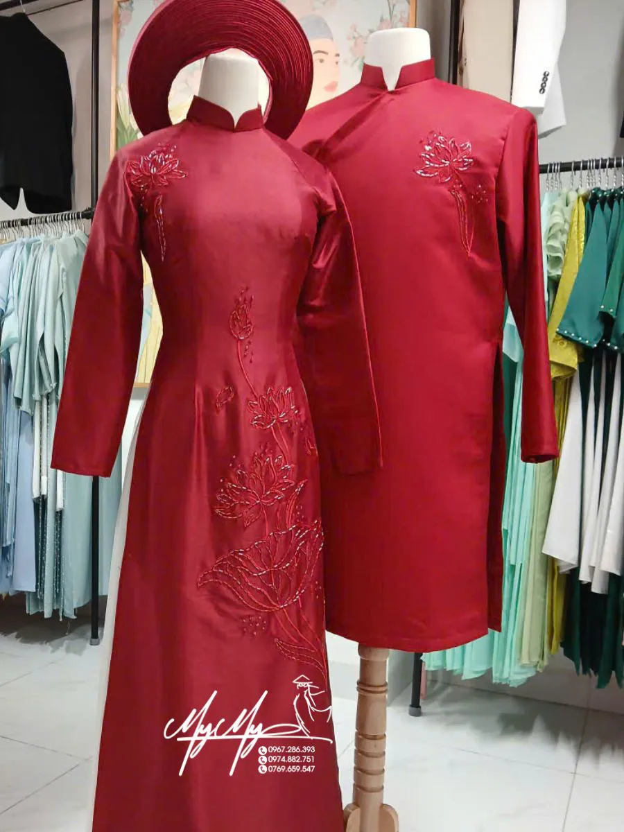 ÁO DÀI CƯỚI CẶP ĐỎ LAN HỒ ĐIỆP