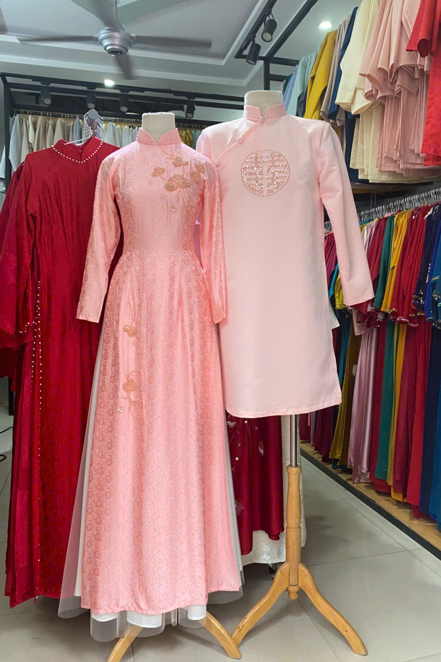 ÁO DÀI CƯỚI CẶP HỒNG KẾT HOA