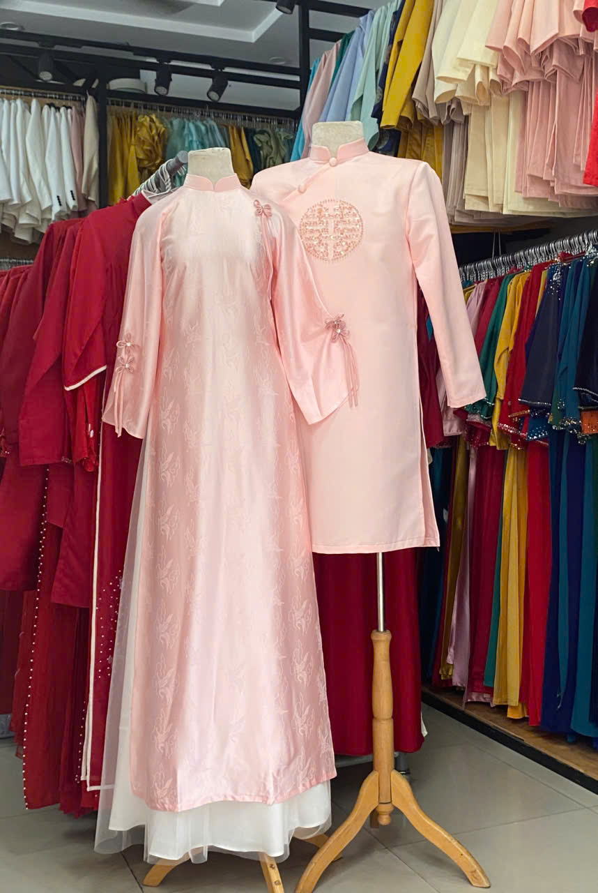 ÁO DÀI CƯỚI CẶP HỒNG KẾT HOA